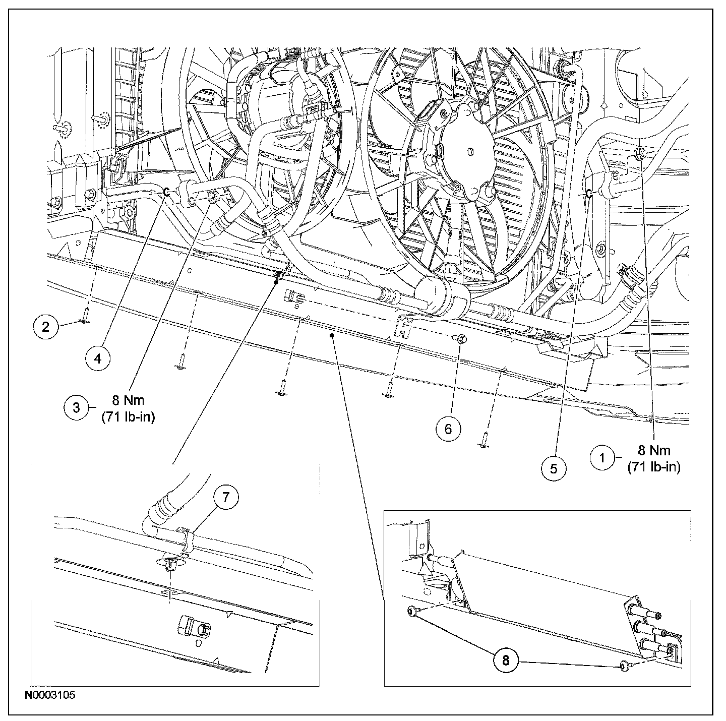 NOTE: Installation of a new suction accumulator is not required when repairing the air conditioning system, except when there is physical evidence of system contamination from a failed A/C compressor or damage to the suction accumulator.