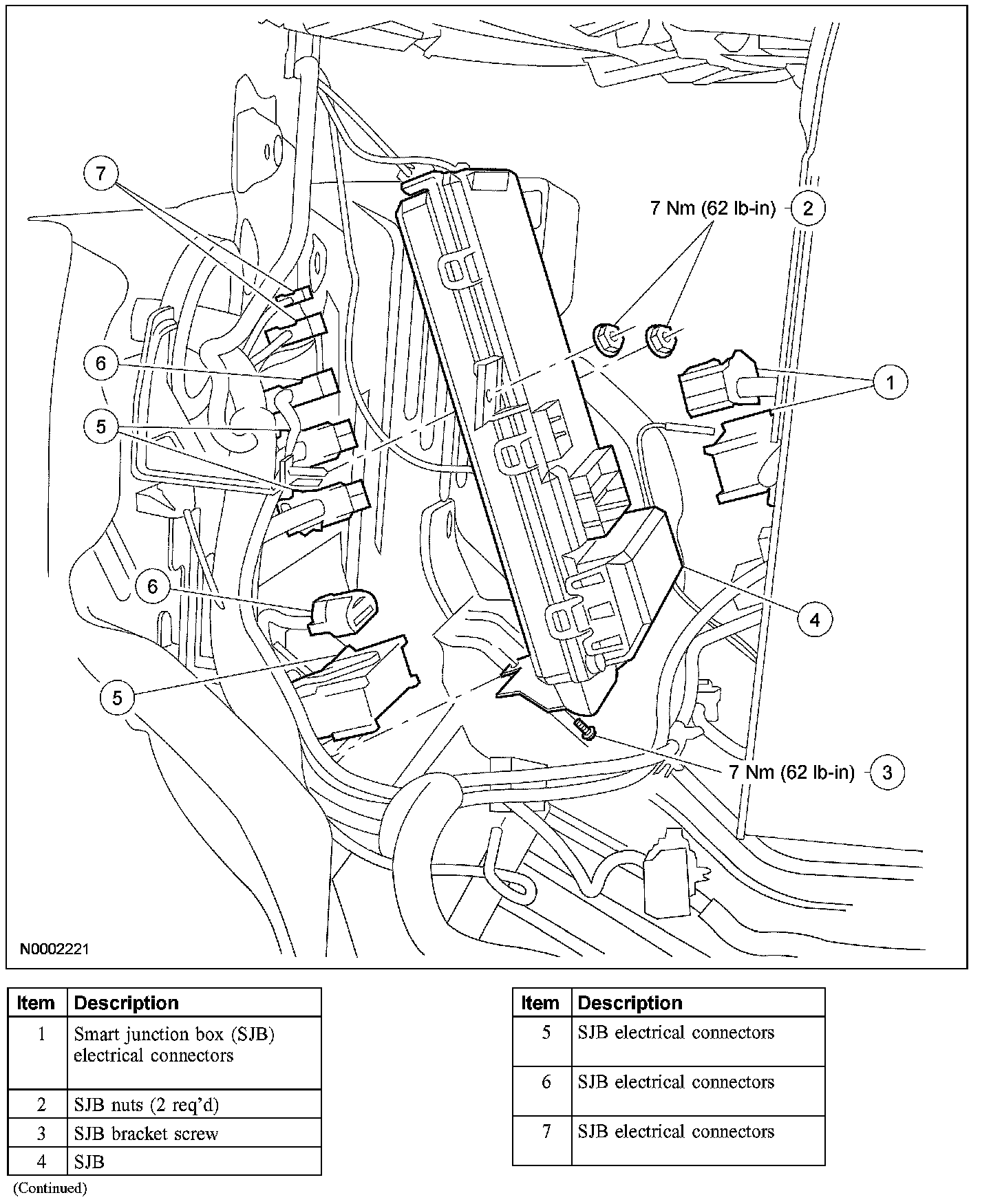 6. NOTE: Position the SJB forward to allow access to the wiring harness connectors on the rear face of the SJB.
