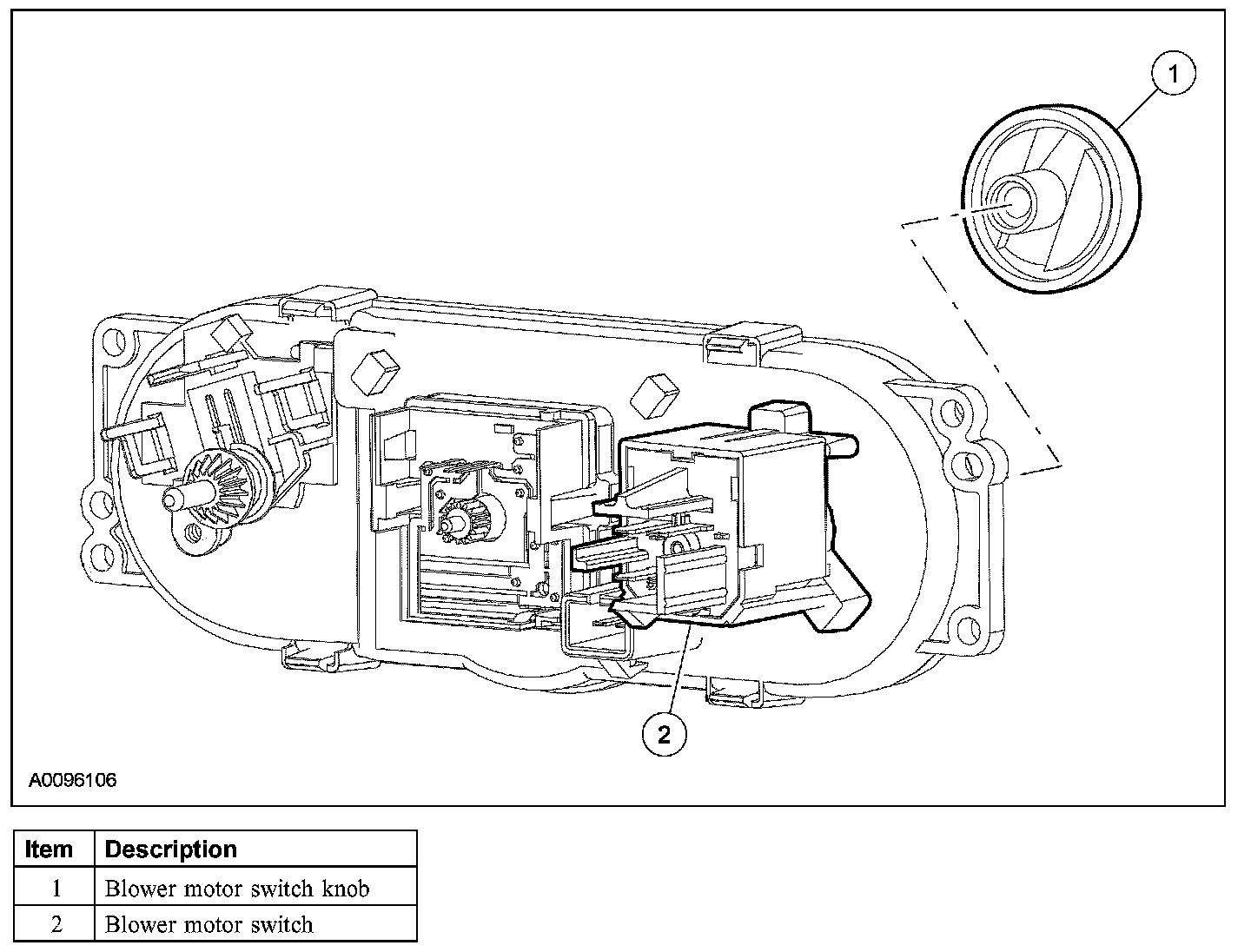 3. Press the tabs simultaneously and remove the blower motor switch.