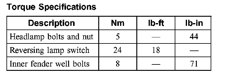 Torque Specifications: