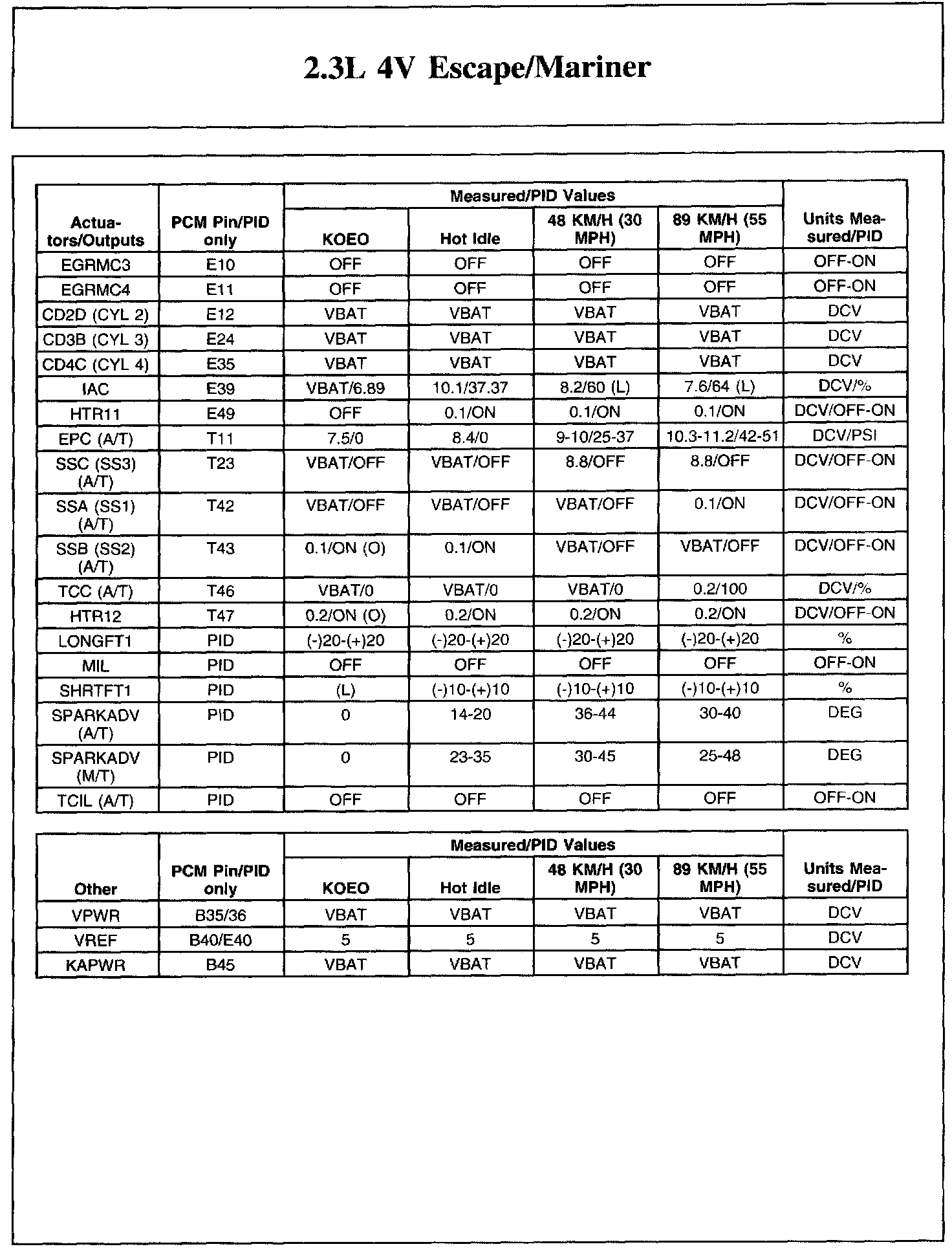 The Typical Diagnostic Reference Value Charts do not display fault parameter identifications (PIDs). These are PIDs which indicate a hard fault with the circuit. They display a value of YES or NO and are PIDs ending with the letter F.