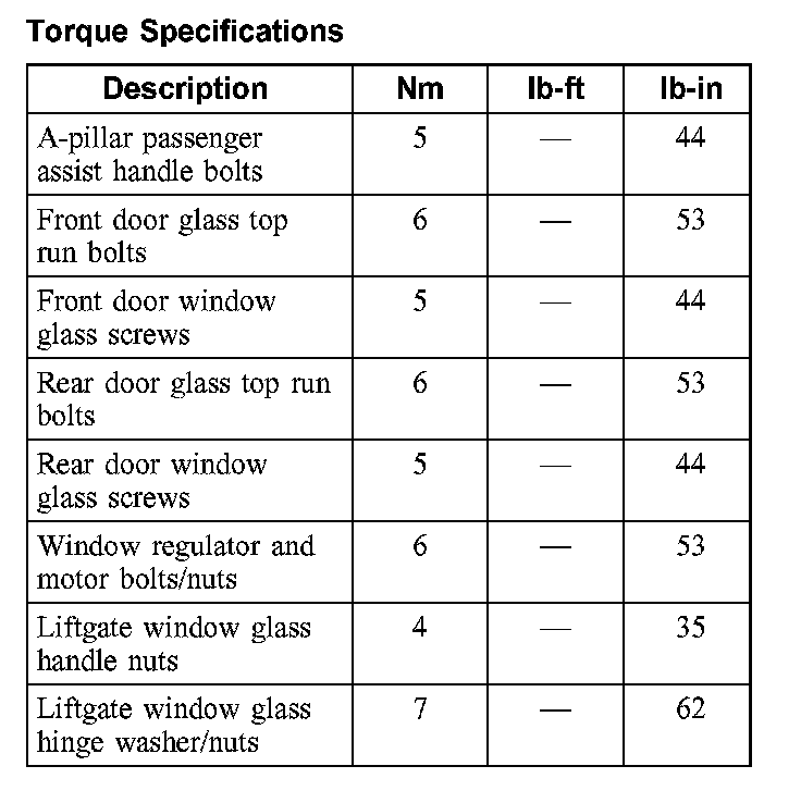Torque Specifications:
