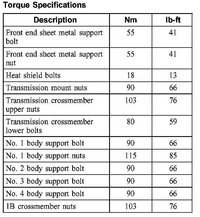 Torque Specifications: