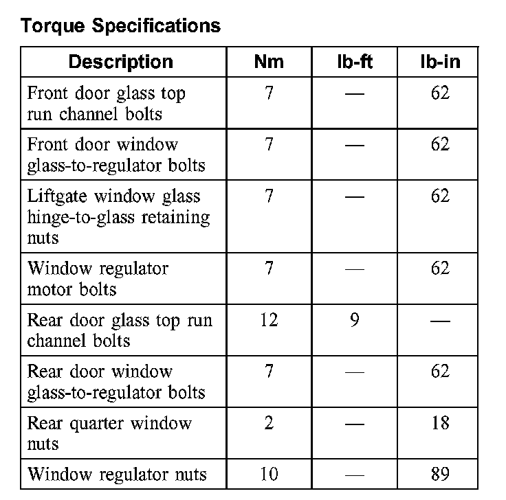 Torque Specifications:
