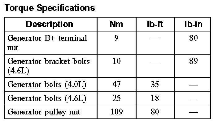 Torque Specifications: