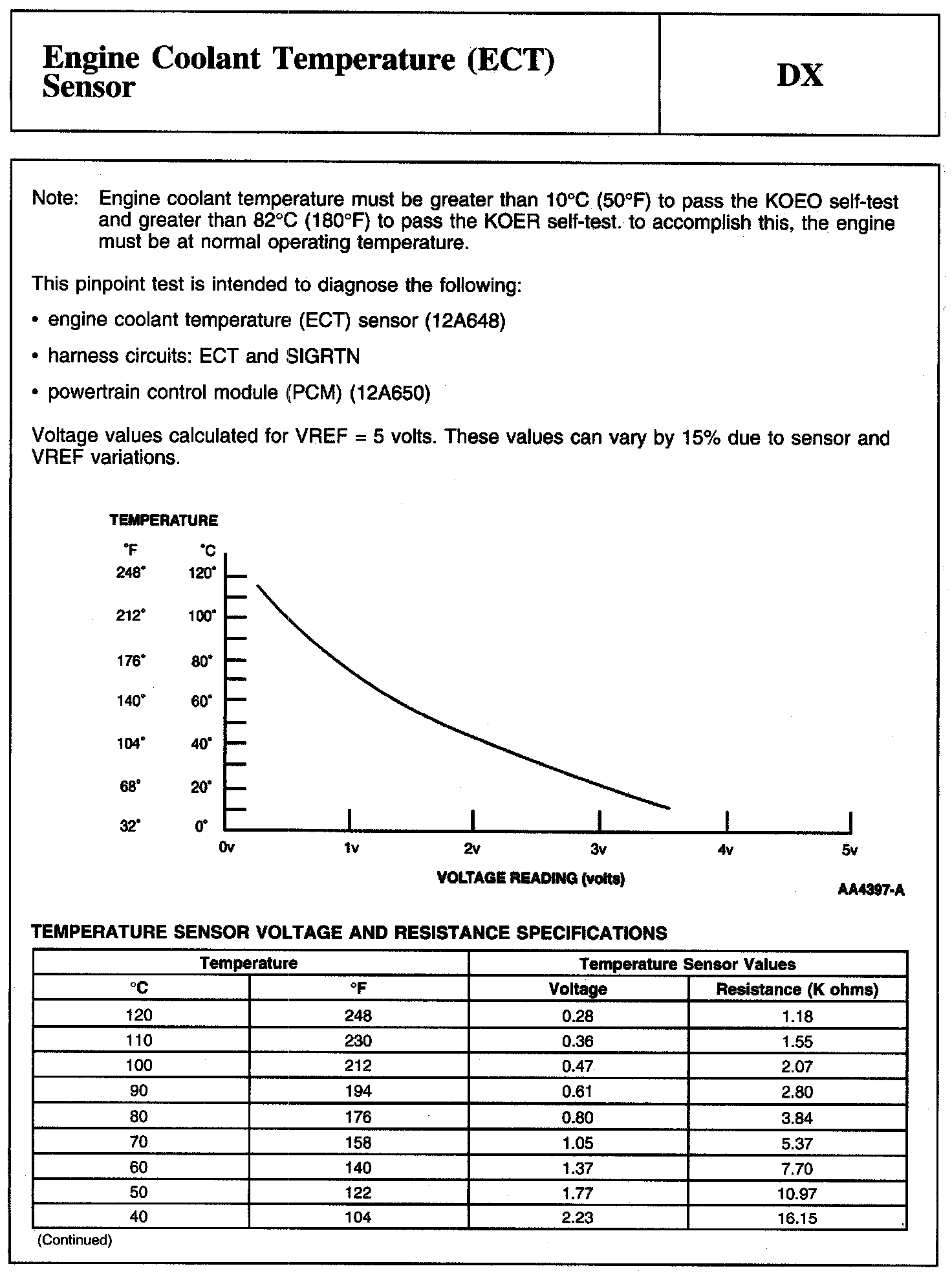 PINPOINT TEST DX: ENGINE COOLANT TEMPERATURE (ECT) SENSORGraph And Table: