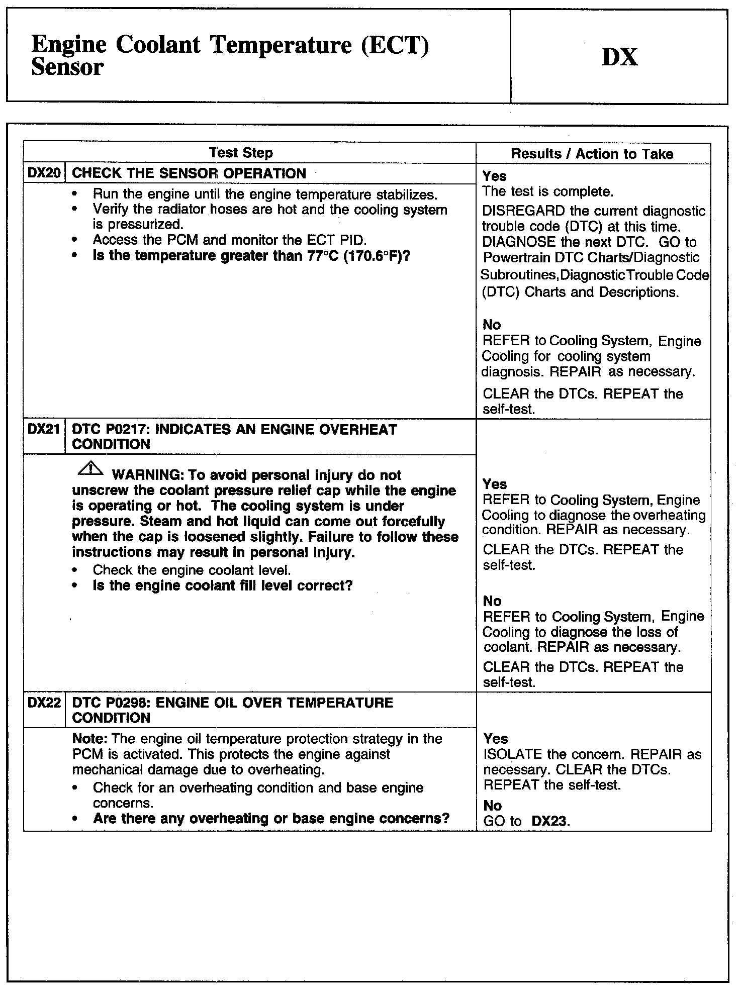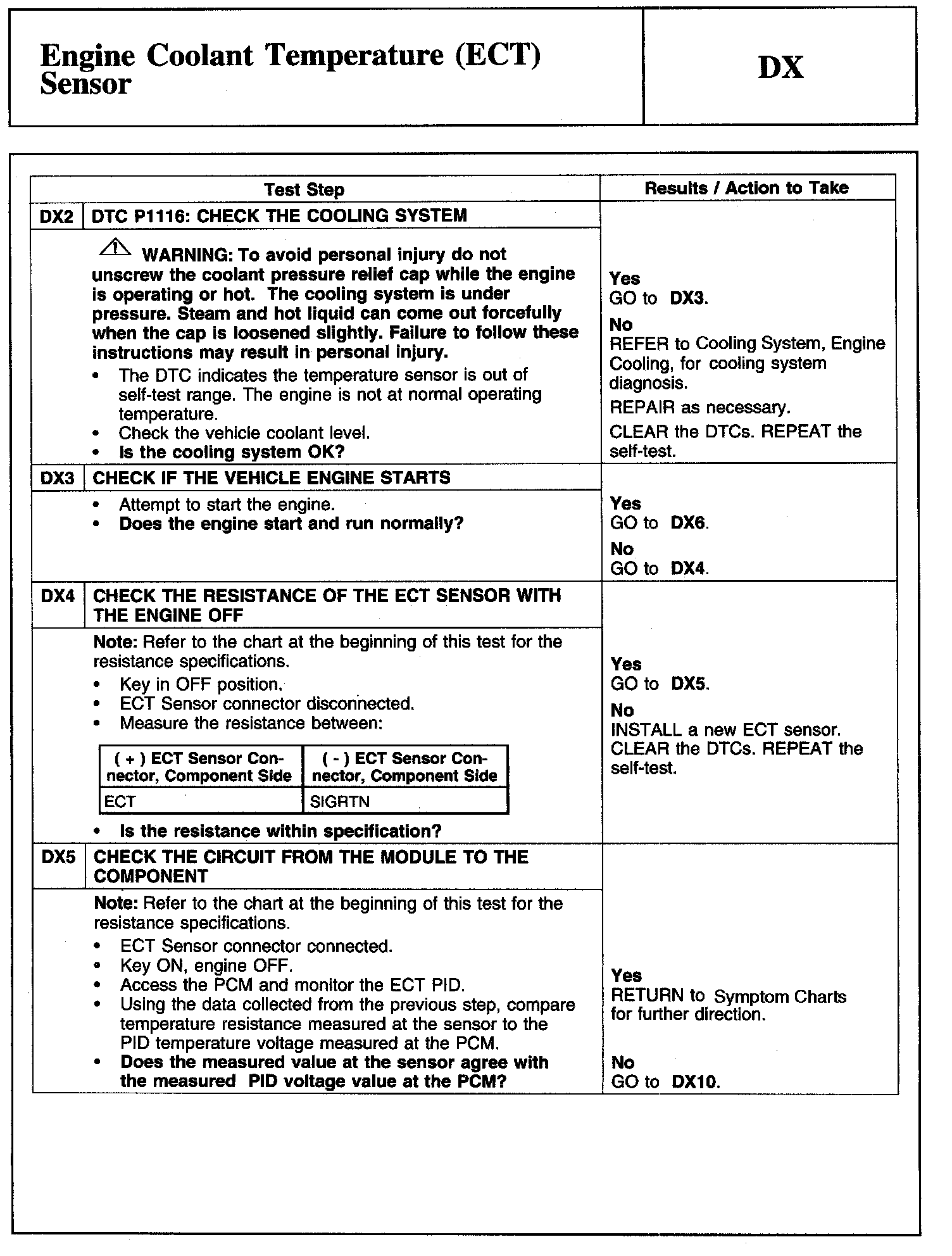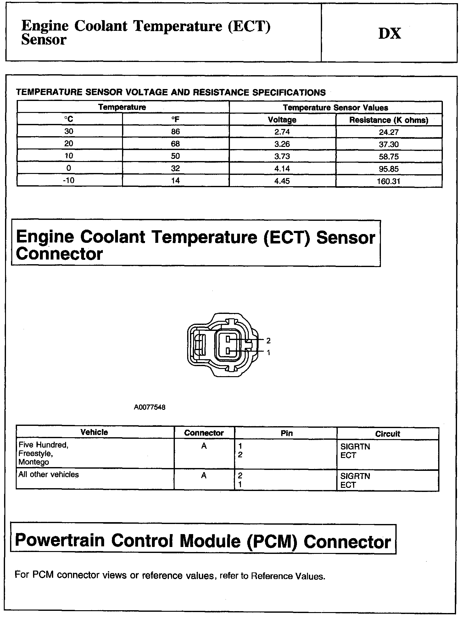 Tests DX: Engine Coolant Temperature (ECT) Sensor