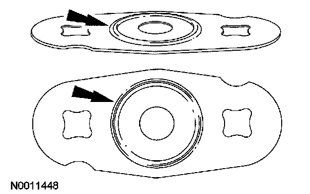 3. NOTE: When installing the new EGR module gasket, install with the side with the raised circle facing the intake manifold.