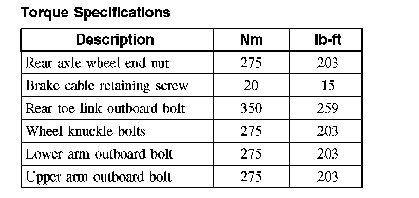Torque Specifications: