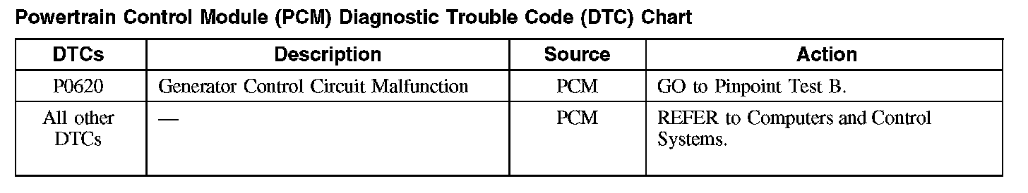 Powertrain Control Module (PCM) Diagnostic Trouble Code (DTC) Chart