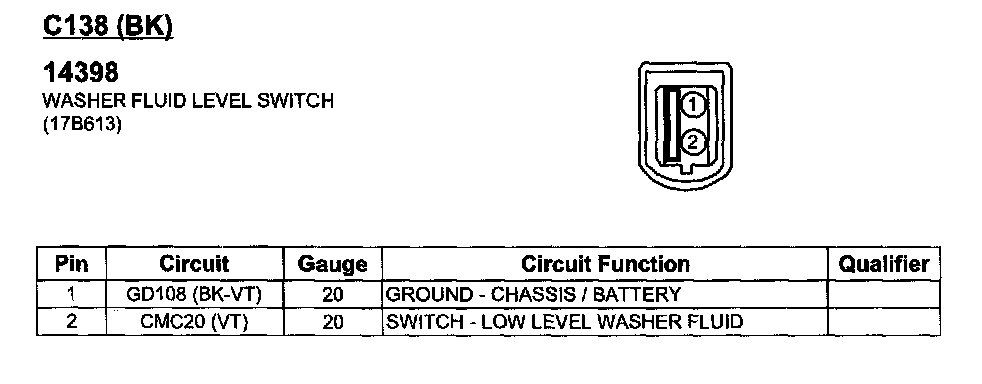 Washer Fluid Level Switch
