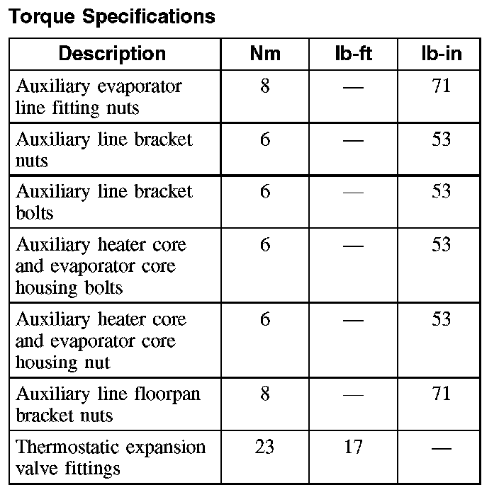 Torque Specifications: