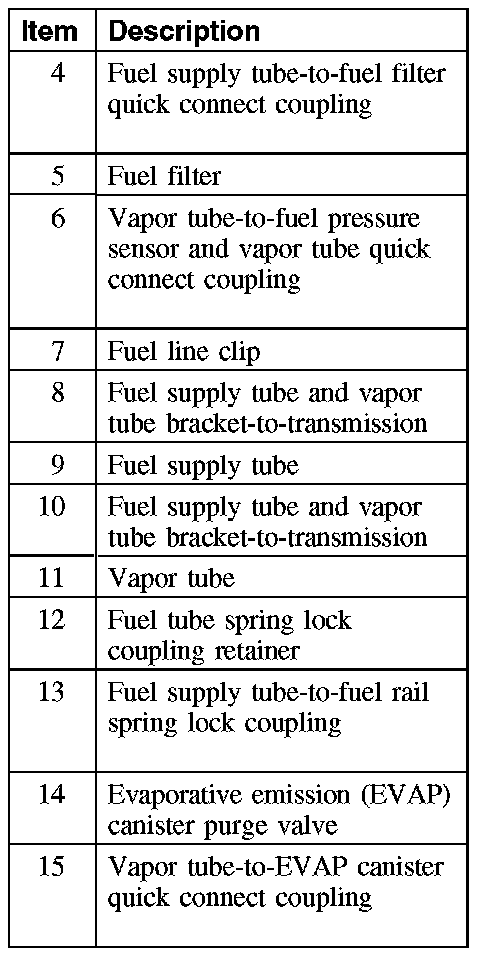 6. Disconnect the fuel supply tubes quick connect couplings.