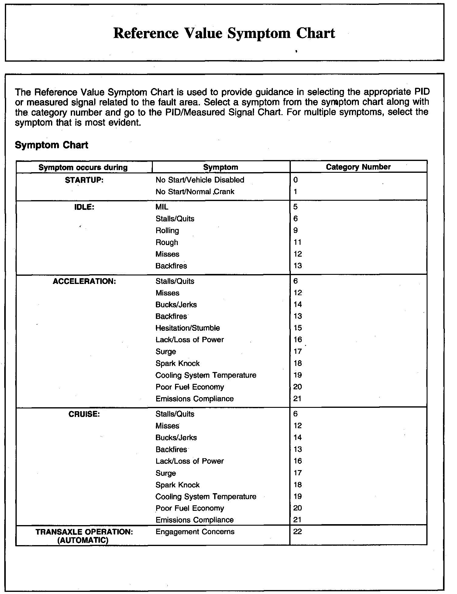 Reference Value Symptom Chart