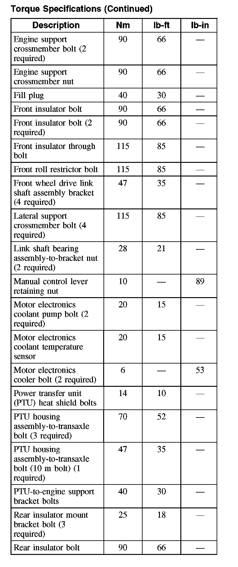 Torque Specifications (Part 2):