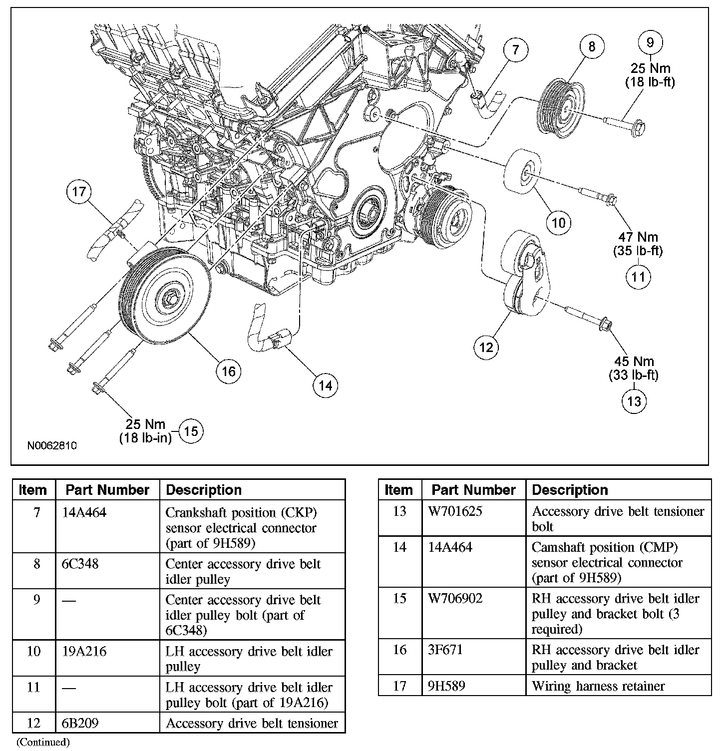 16. Install the LH accessory drive belt idler pulley.