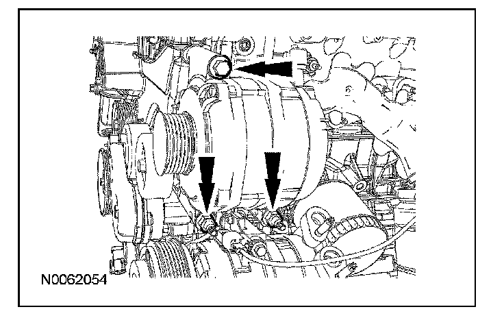 10. Remove the 3 RH accessory drive belt idler pulley and bracket bolts.