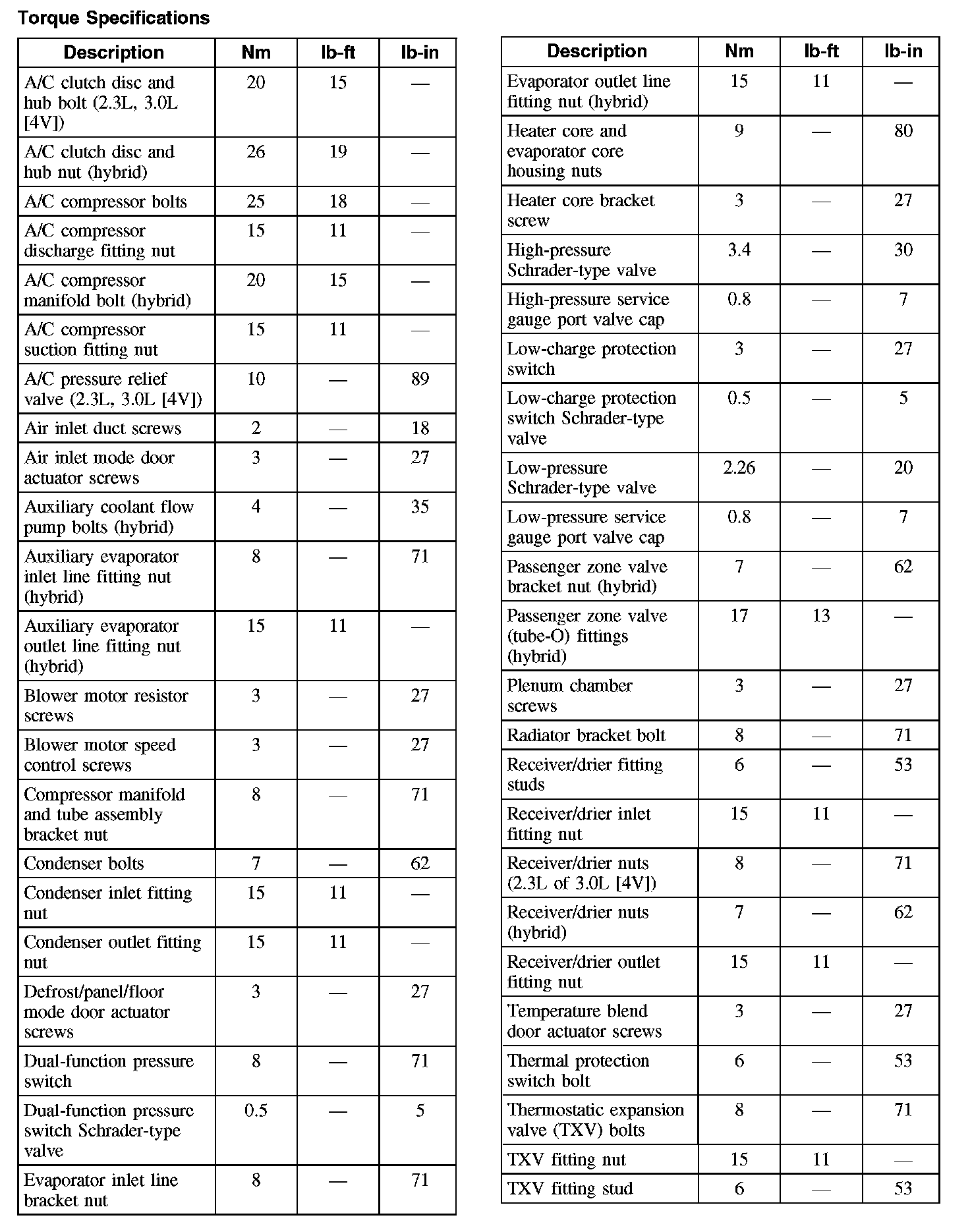 Torque Specifications: