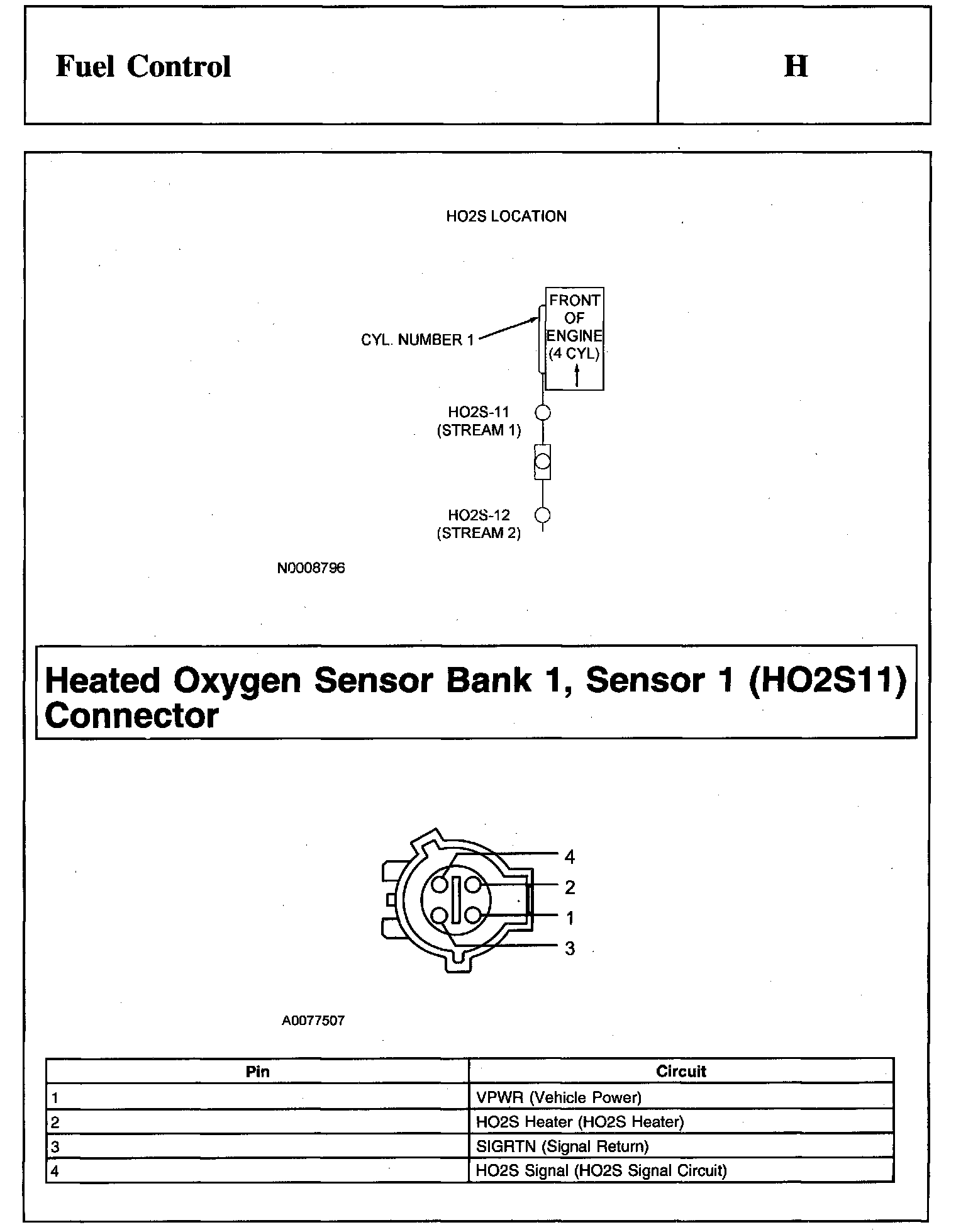 Schematic And Heated Oxygen Sensor Bank 1, Sensor 1 (HO2S11) Connector: