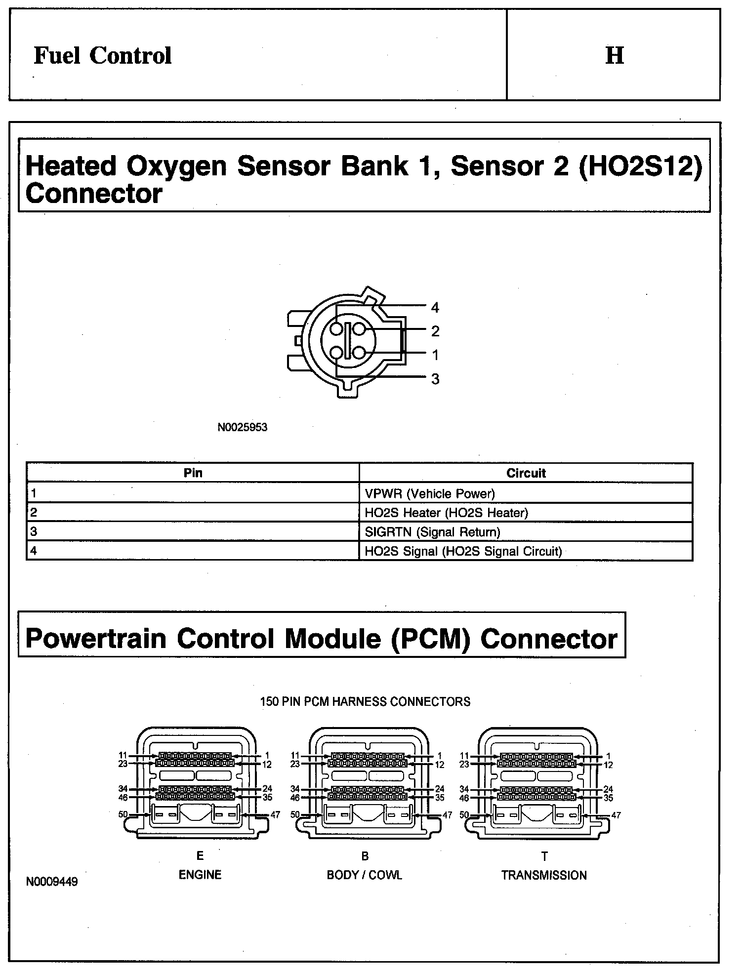 Heated Oxygen Sensor Bank 1, Sensor 2 (HO2S12) Connector And Powertrain Control Module (PCM) Connector:
