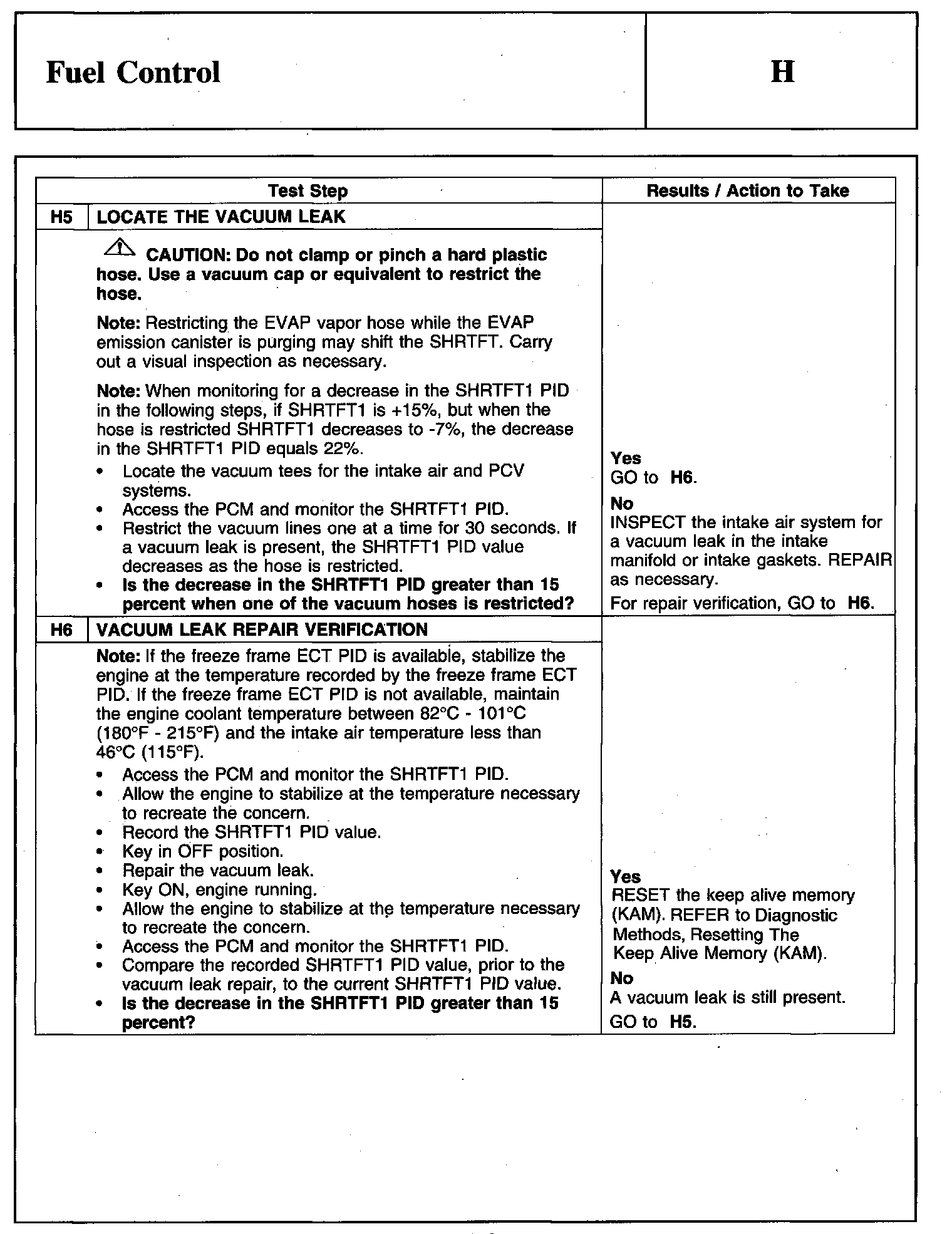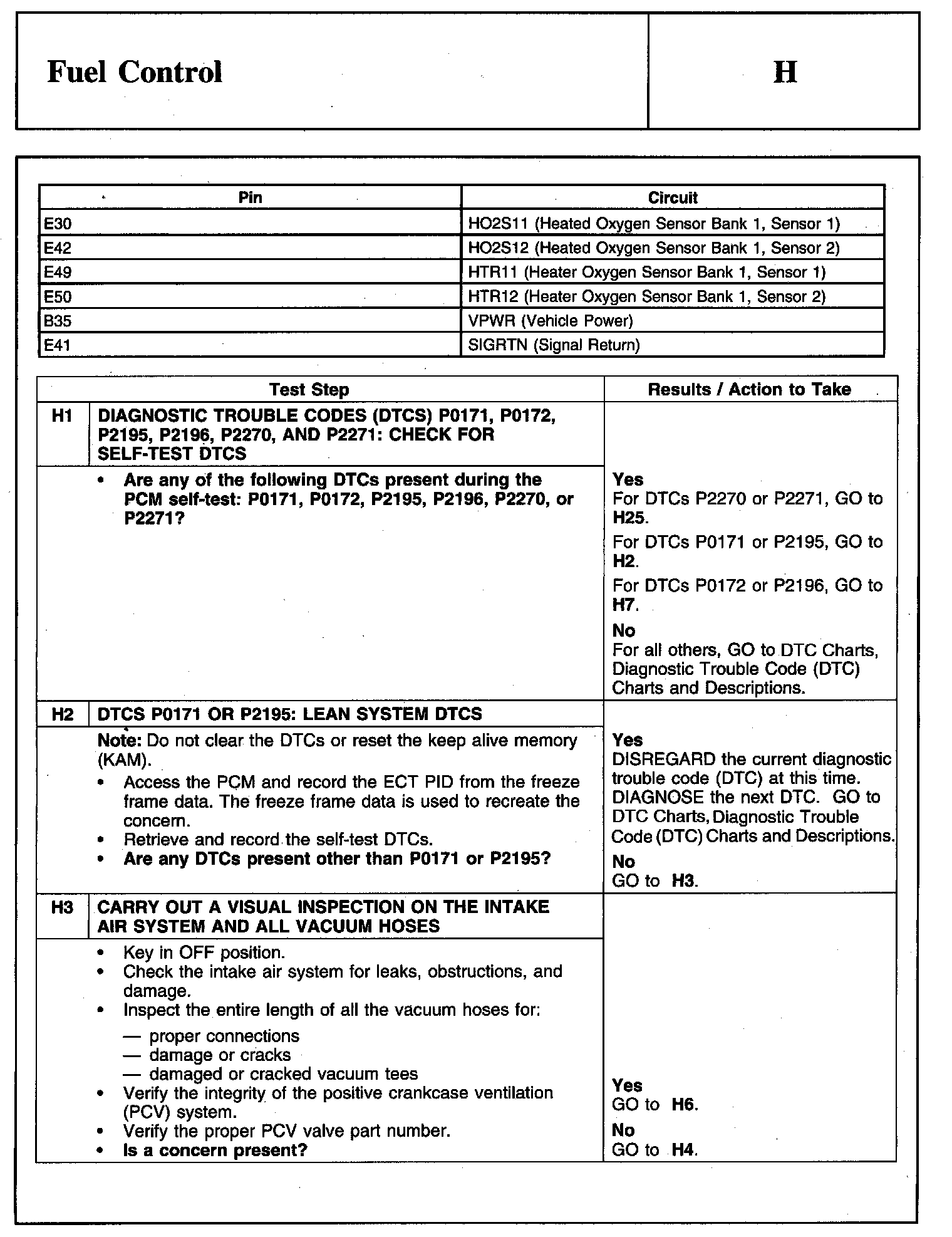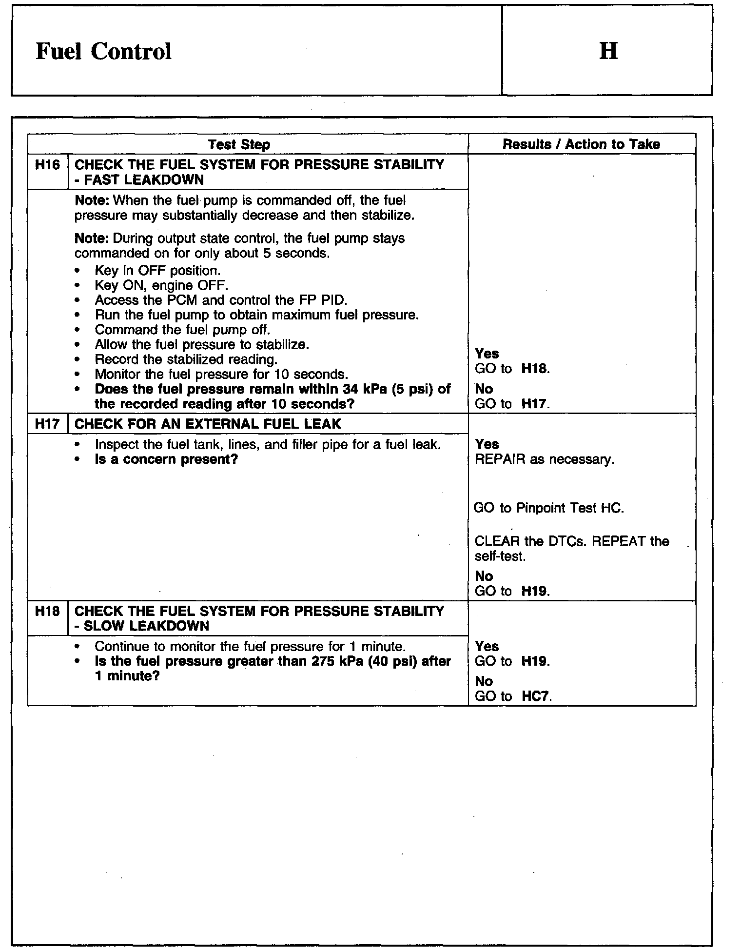 PINPOINT TEST H: FUEL CONTROLWarnings And Important Safety Notice: