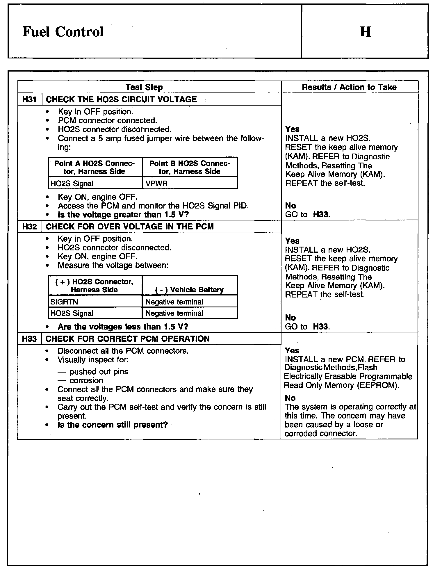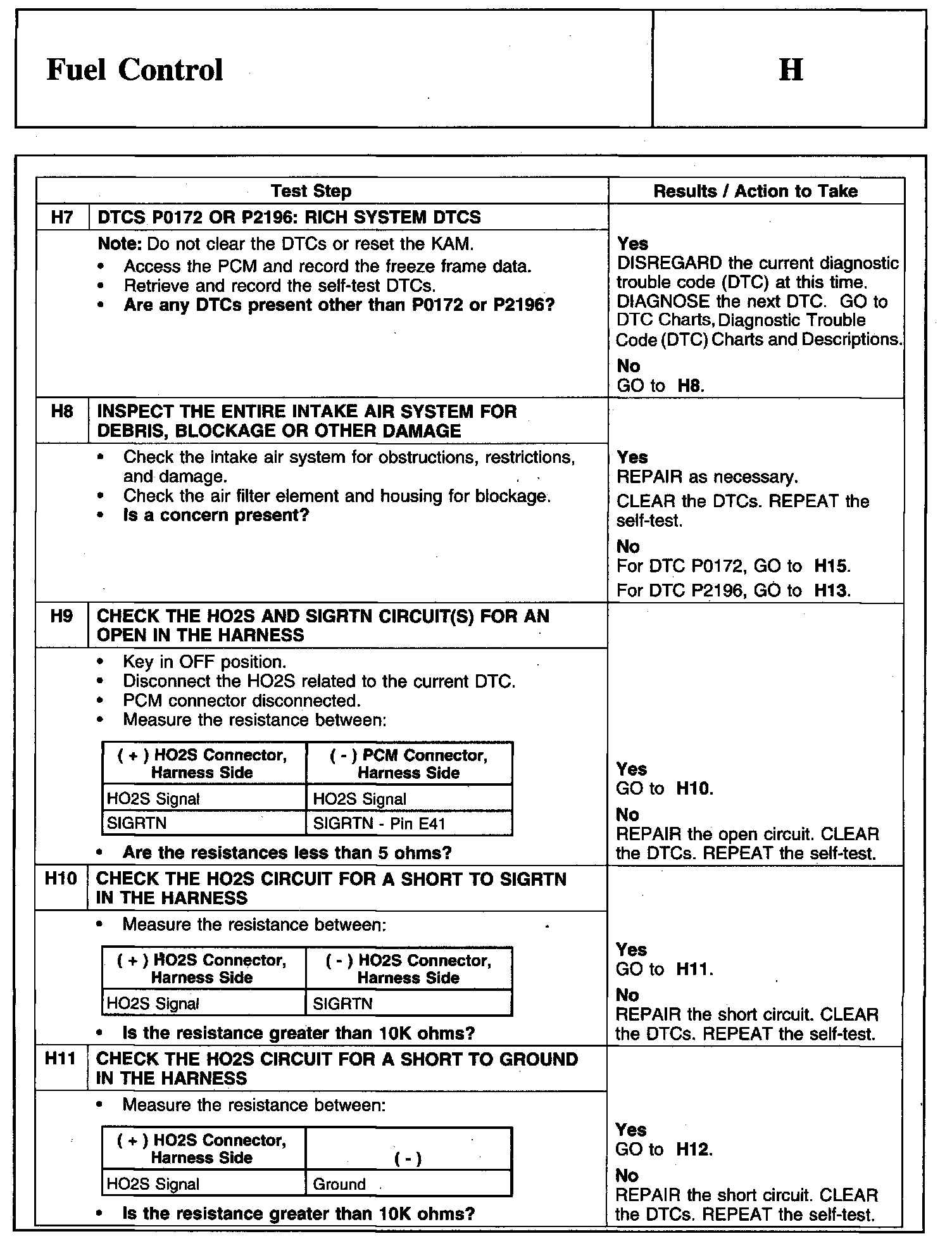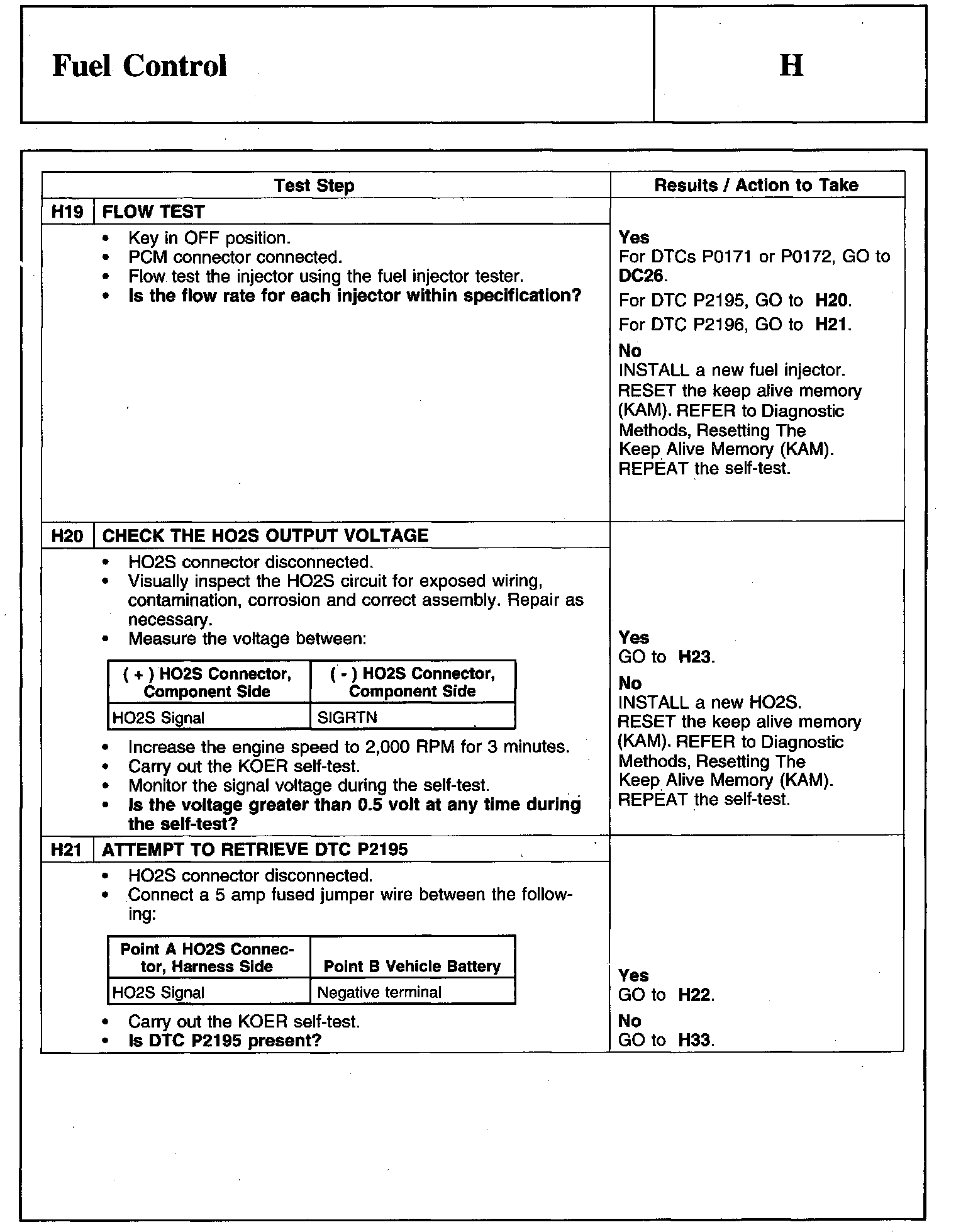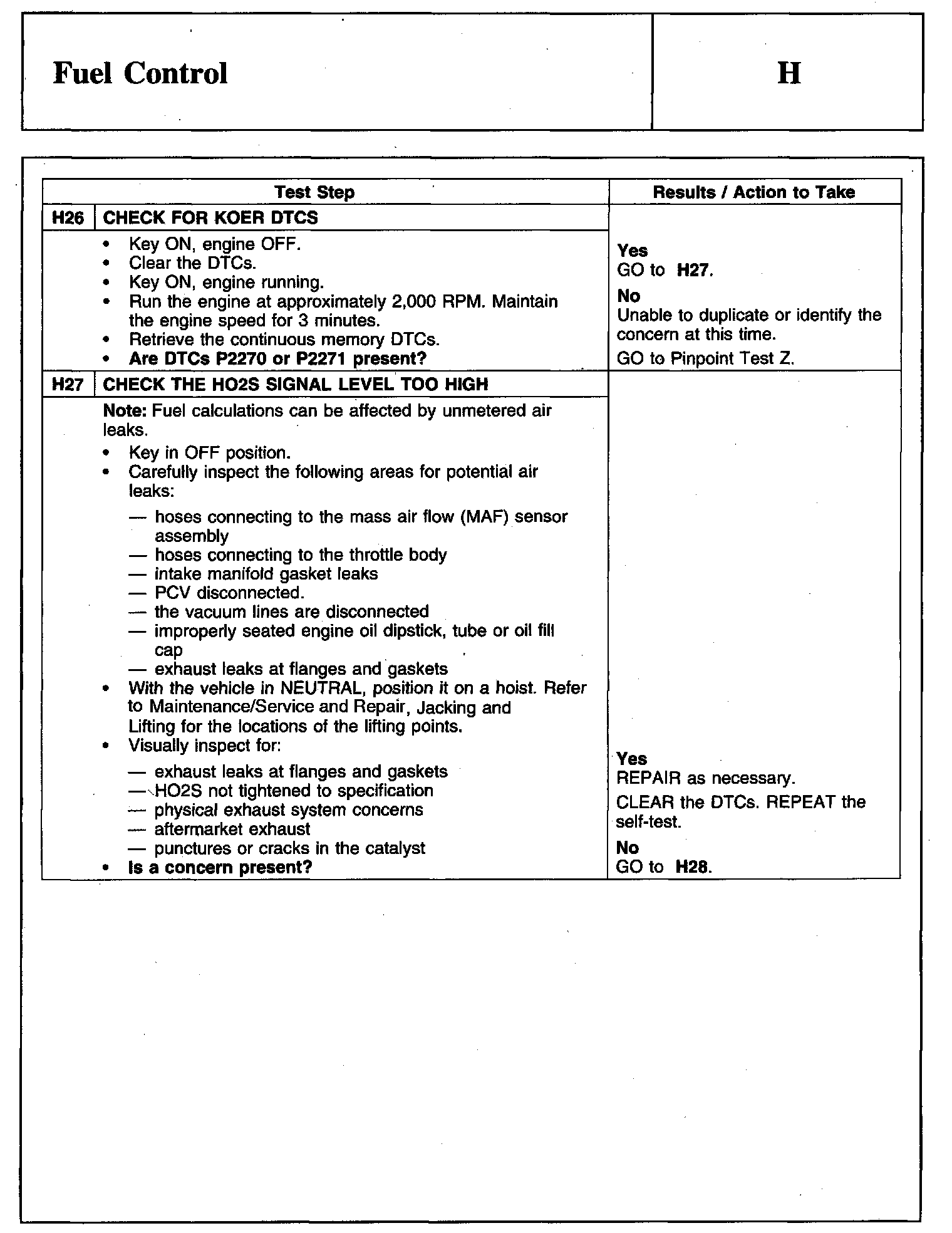 PINPOINT TEST H: FUEL CONTROLWarnings And Important Safety Notice: