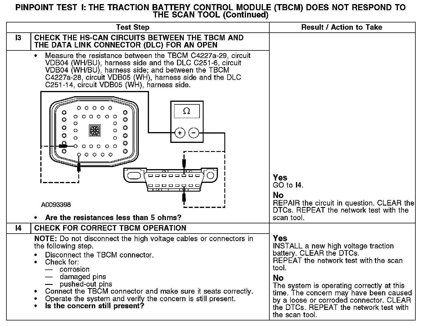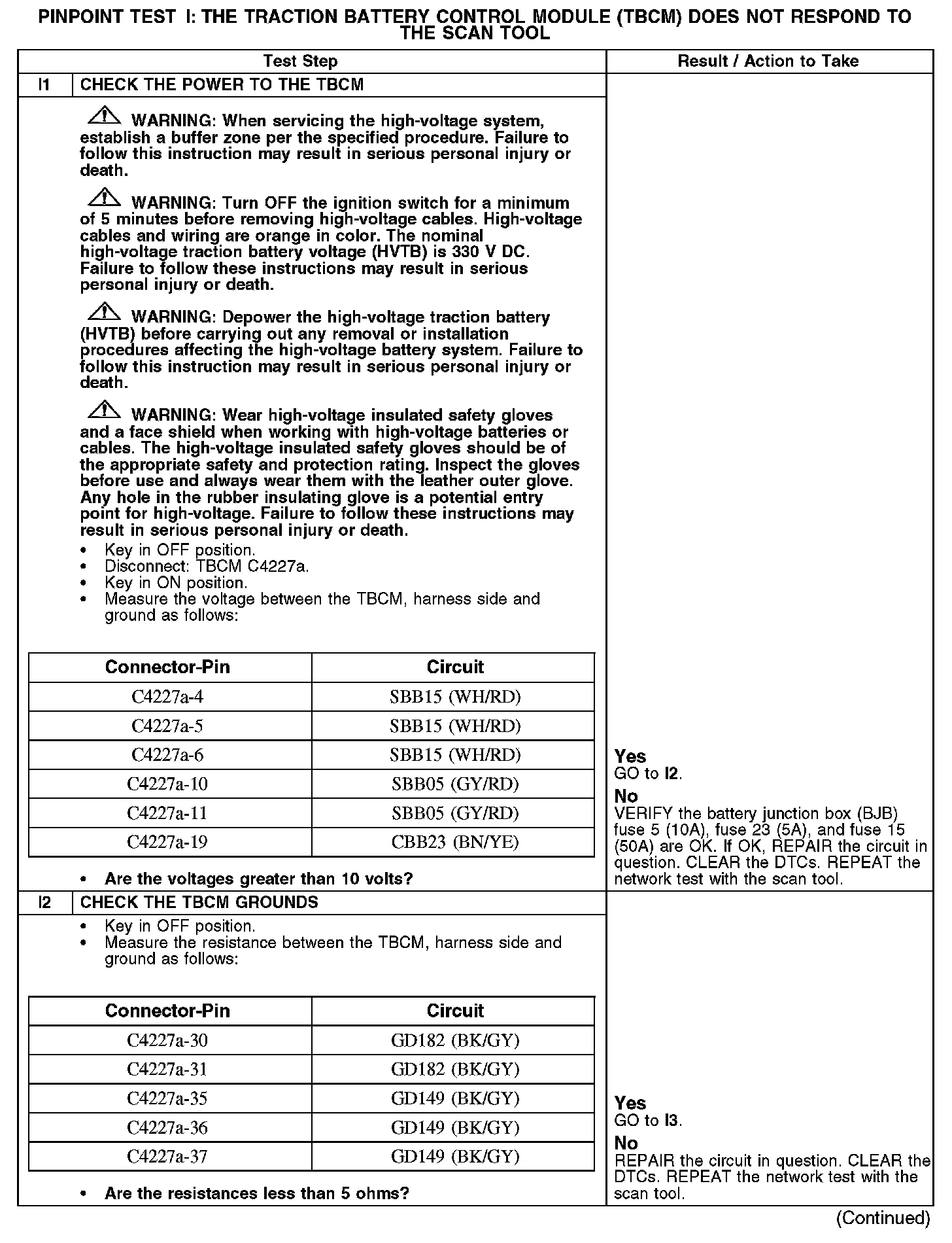 PINPOINT TEST I: THE TRACTION BATTERY CONTROL MODULE (TBCM) DOES NOT RESPOND TO THE SCAN TOOL