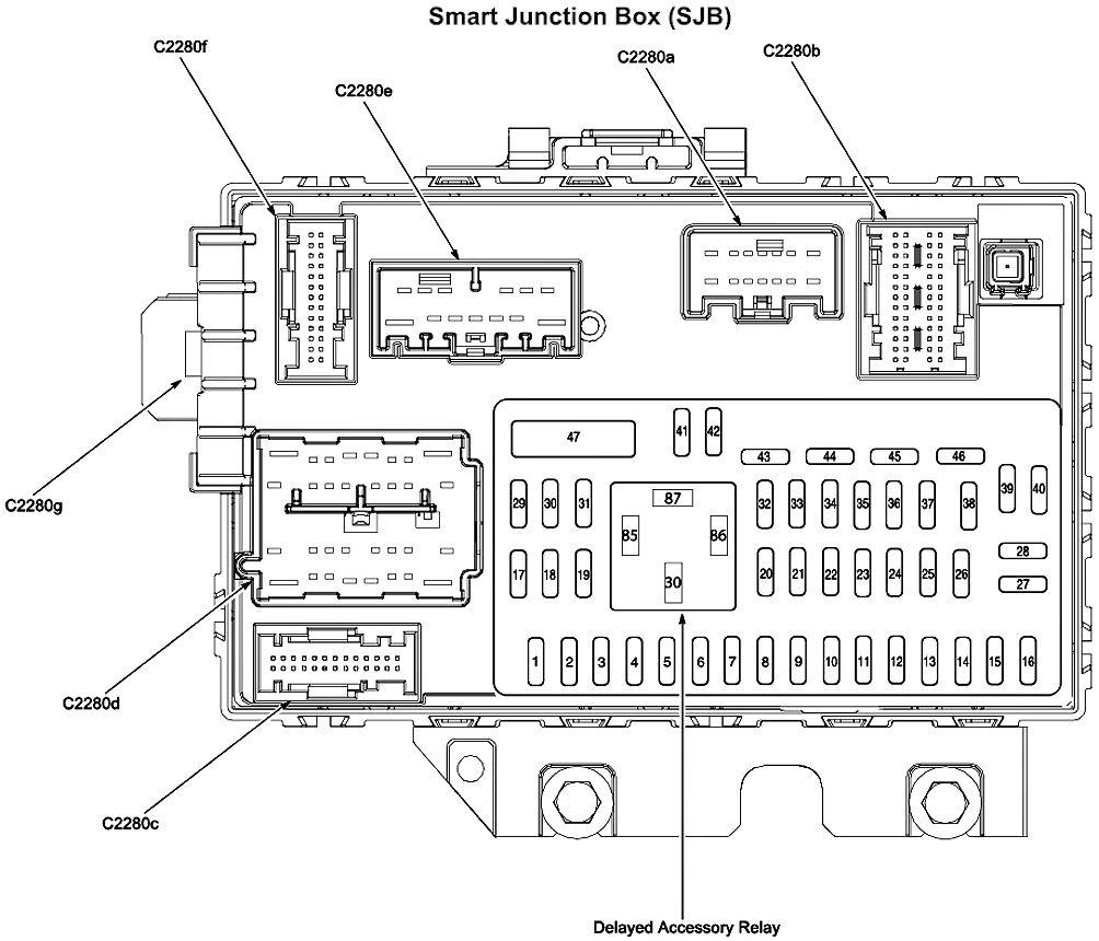 The fuse panel is located on the right-hand side of the center console, by the instrument panel. Remove the panel cover to access the fuse cover. Press the tabs on the top and bottom of the fuse cover to remove.