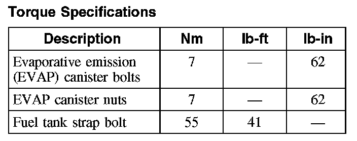 Torque Specifications: