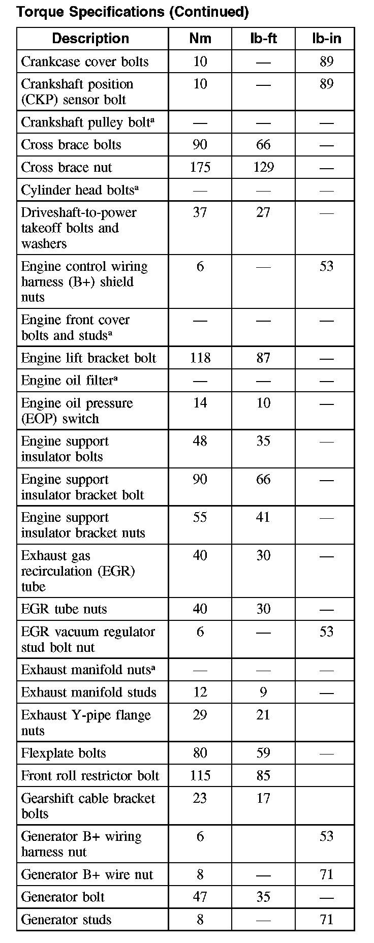 Torque Specifications (Part 2):