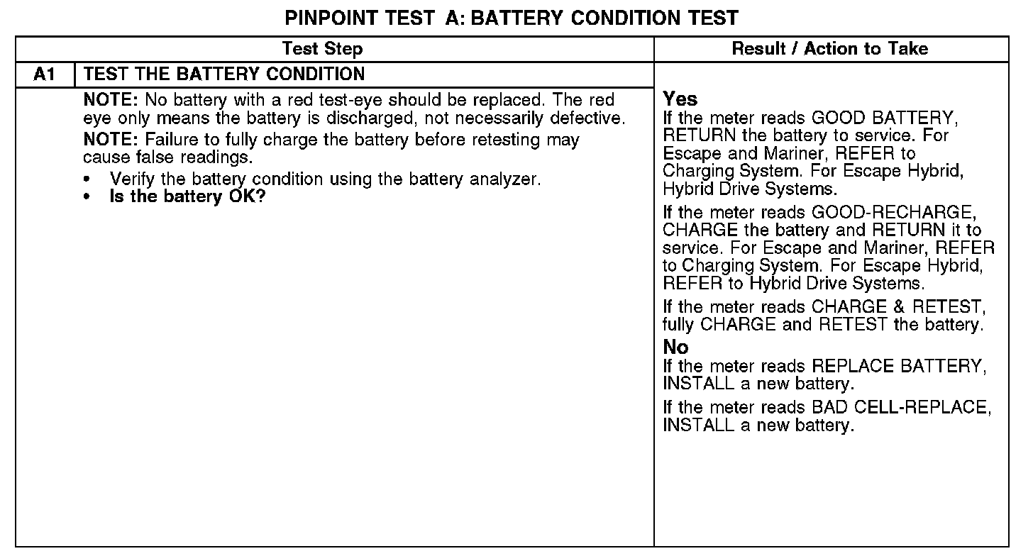 PINPOINT TEST A: BATTERY CONDITION TEST