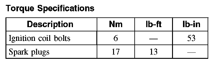 Torque Specifications:
