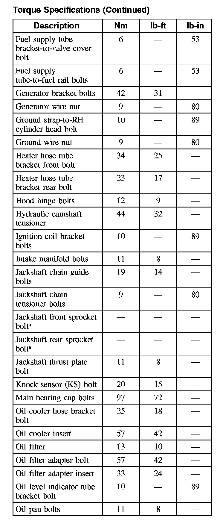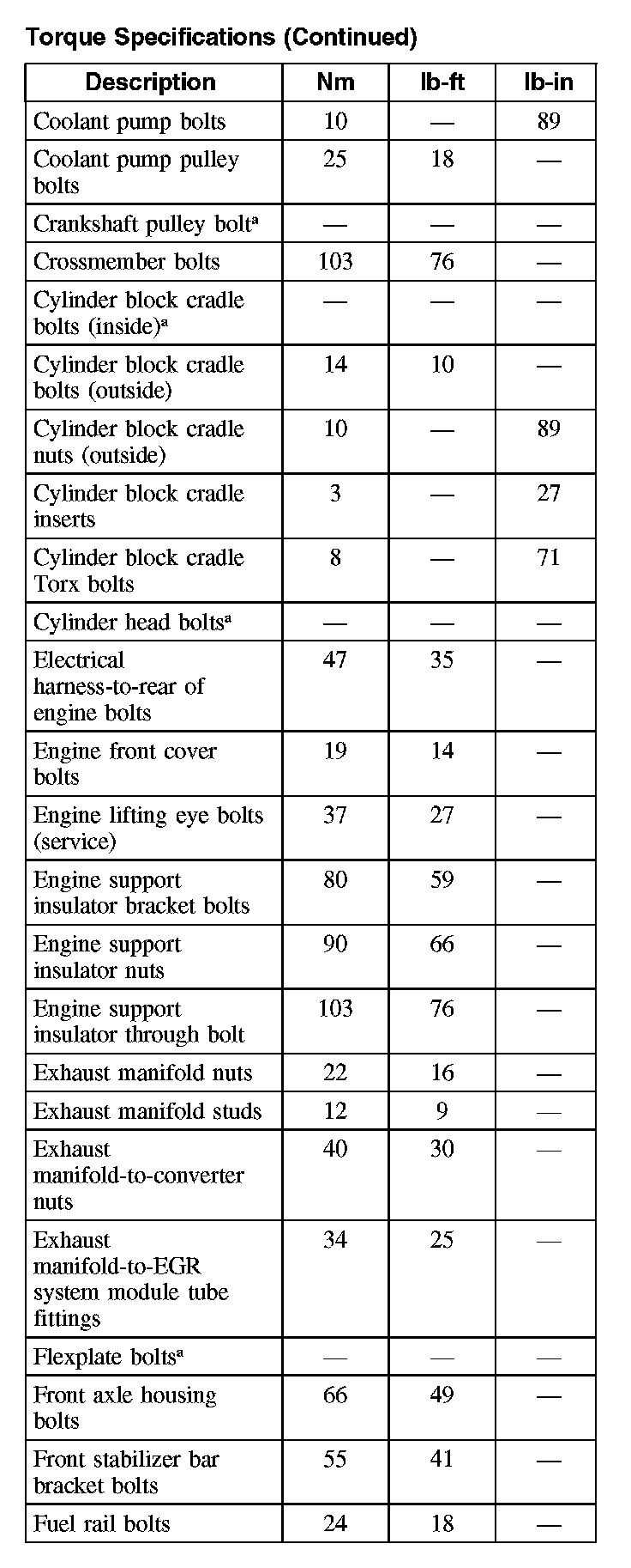 Torque Specifications