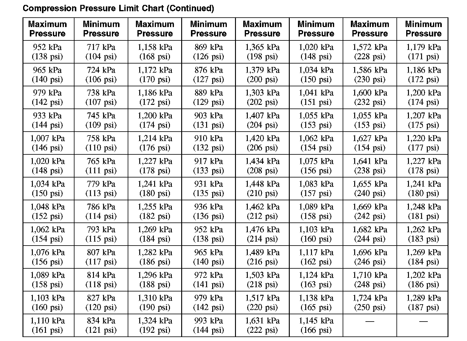 AllData Editors Note - Ford does not provide a cranking pressure specification, only an acceptable range.Compression Test - Test Results