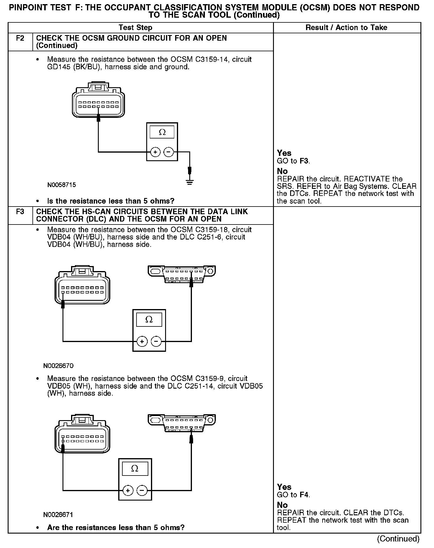 PINPOINT TEST F: THE OCCUPANT CLASSIFICATION SYSTEM MODULE (OCSM) DOES NOT RESPOND TO THE SCAN TOOLNormal Operation
