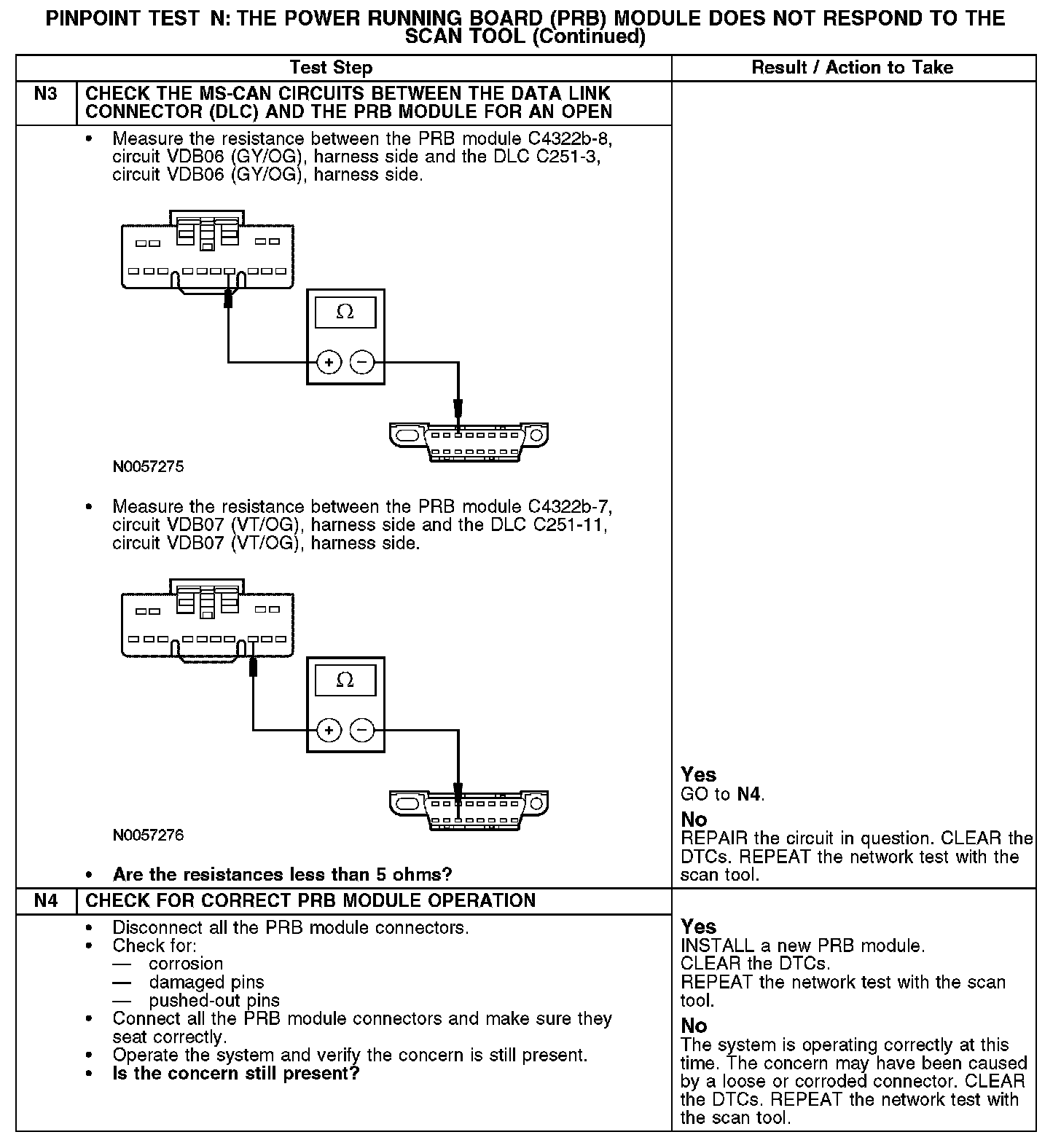 PINPOINT TEST N: THE POWER RUNNING BOARD MODULE DOES NOT RESPOND TO THE SCAN TOOL