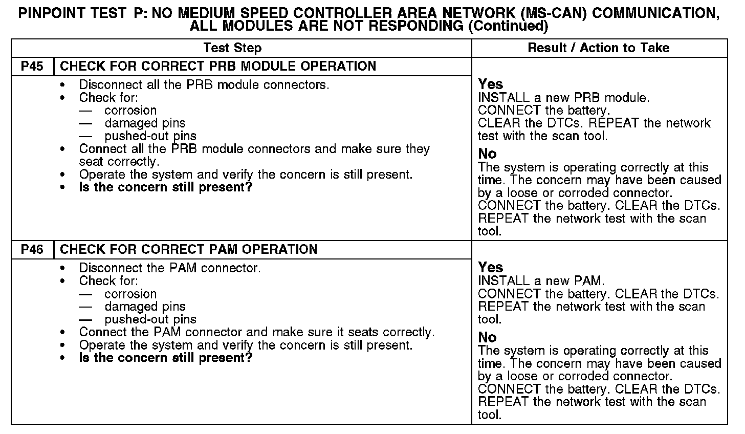 Test P: No Medium Speed Controller Area Network (MS-CAN) Communication, All Modules Are Not Responding