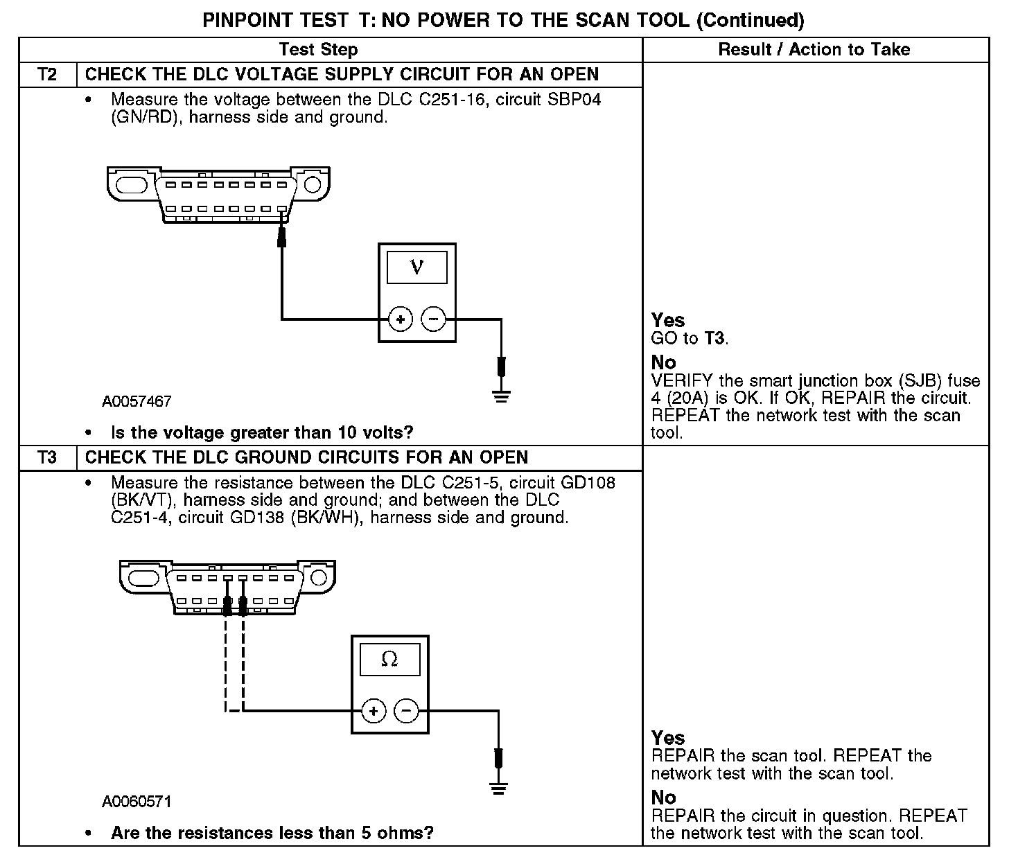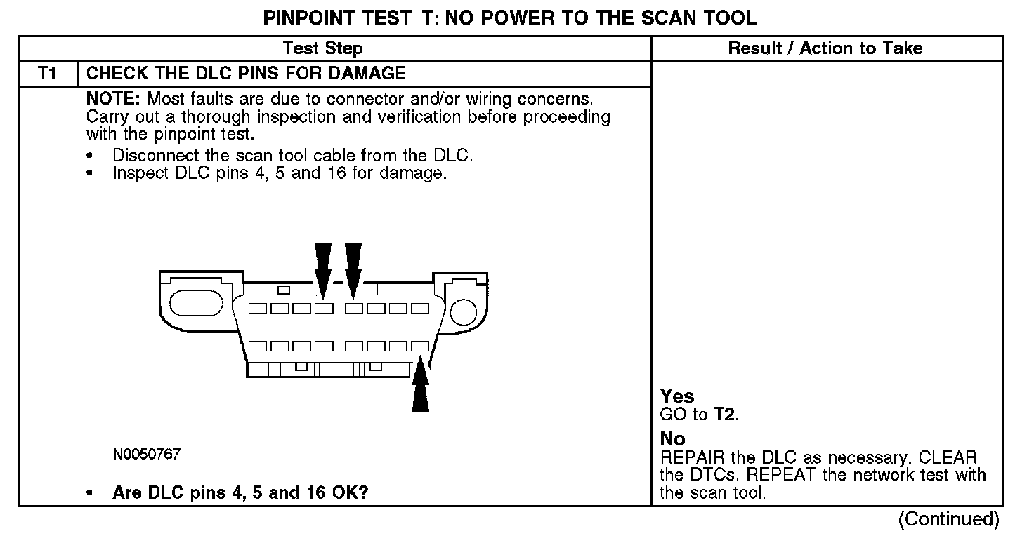 PINPOINT TEST T: NO POWER TO THE SCAN TOOLNormal Operation