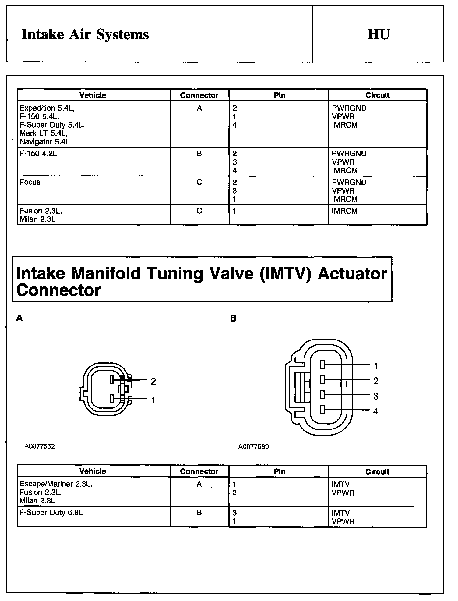 Intake Manifold Runner Control (IMRC) Actuator Connector And Intake Manifold Runner Control Monitor (IMRCM) Sensor Connector: