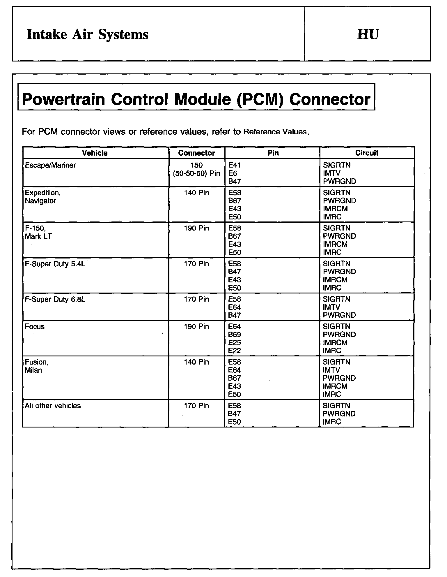 PINPOINT TEST HU: INTAKE AIR SYSTEMSDescription And Intake Air System: