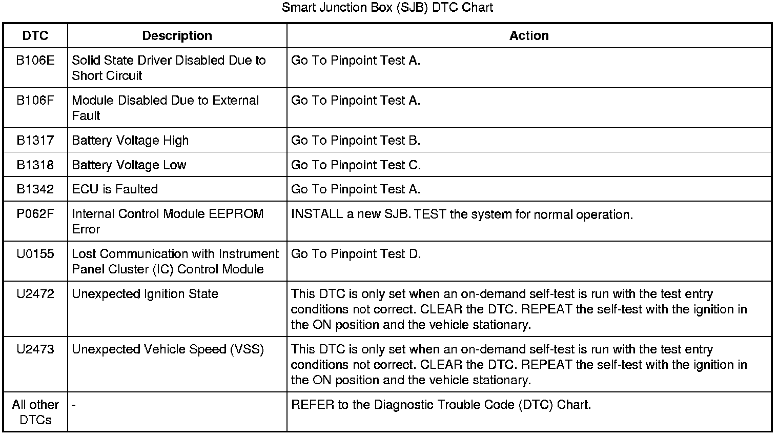 Smart Junction Box (SJB) DTC Chart