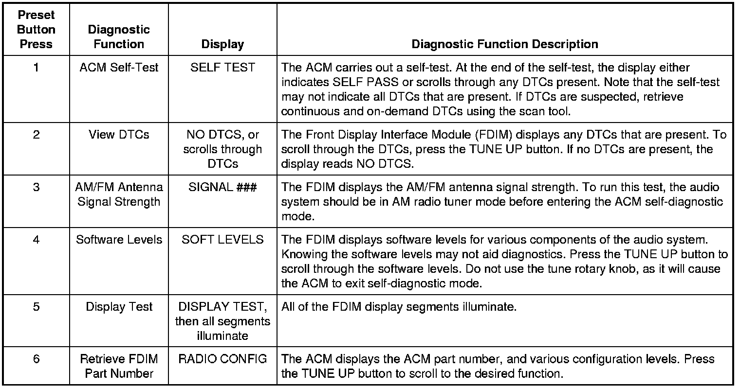 Audio Control Module (ACM) Self-Diagnostic Mode