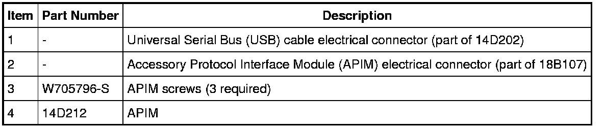 3. Disconnect the APIM electrical connector and the Universal Serial Bus (USB) cable electrical connector.