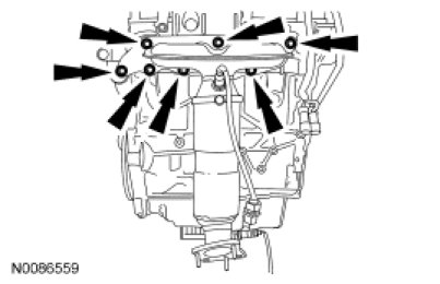 Position the catalytic converter and tighten the 7 new nuts in the sequence shown in 2 stages: