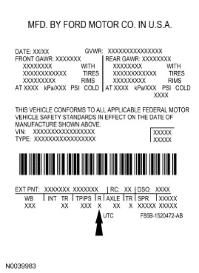 The upper portion of the Vehicle Certification (VC) label contains the manufacturer's name, the month and year of manufacture, the certification statement and the VIN. It also includes Gross Vehicle Weight Rating (GVWR). The VC label is located on the left-hand door jamb. The serial number can also be found on the engine block, transmission and frame.