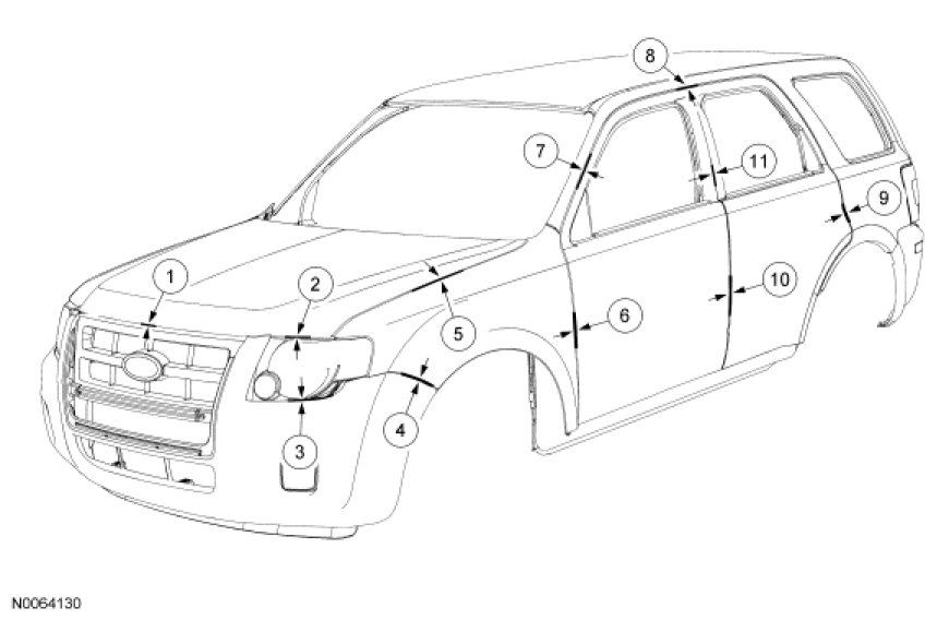 NOTE: The following dimensional illustrations are common for Ford Escape and Mercury Mariner.