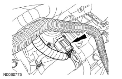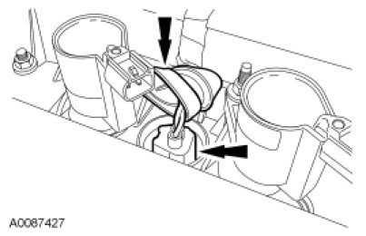 - Attach the wiring harness-to-engine retainer.