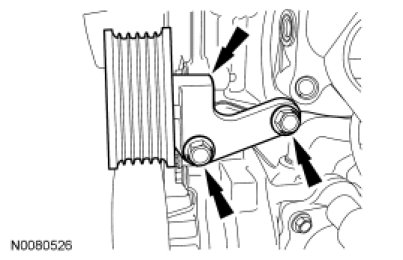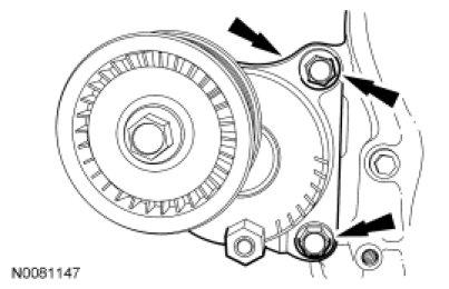 125. Install the accessory drive belt tensioner and the 2 bolts.