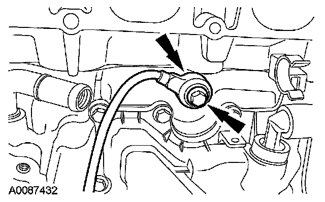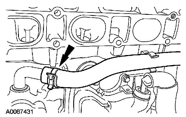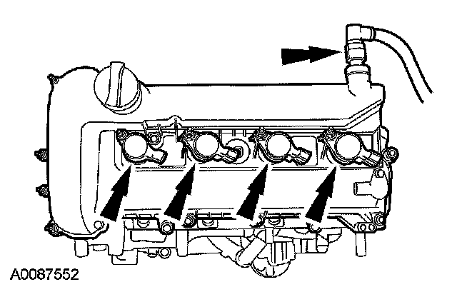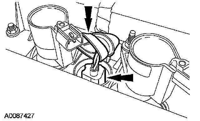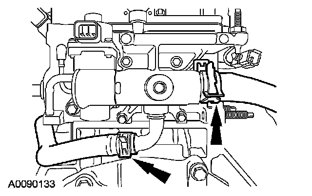 Squeeze the 2 crankcase vent oil separator tube tabs and disconnect the tube from the intake manifold.