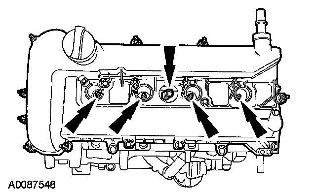 NOTE: Mark the location and orientation of each camshaft bearing cap.